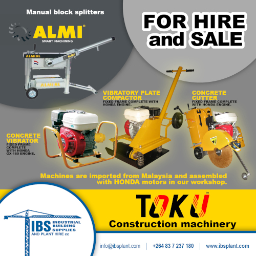 Industrial Building Supplies and Plant Hire CC is a closed company specializing in Sales of construction equipment, spares and the hiring out of Construction Equipment. The sister company Lanco Industrial Supplies CC is also a close company specializing in the sales of Construction Chemicals.