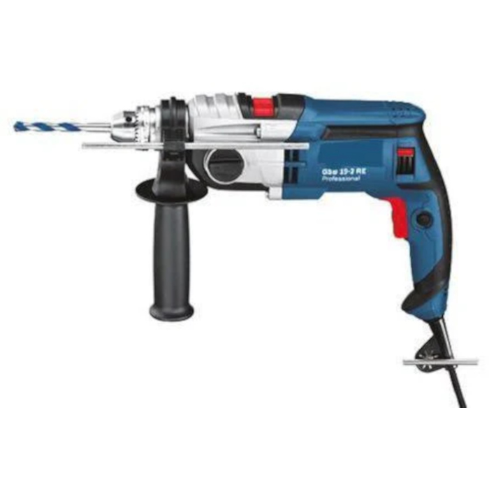 The Bosch GSB 19-2 RE is a powerful 2-speed corded impact drill designed for a wide range of applications — from masonry and concrete to wood and metal. With an 850 W motor and sturdy metal gear housing, it delivers robust, reliable performance, making it ideal for construction, general building work, workshops or maintenance tasks. Its ergonomic handle and balanced design ensure user comfort and control during prolonged use.