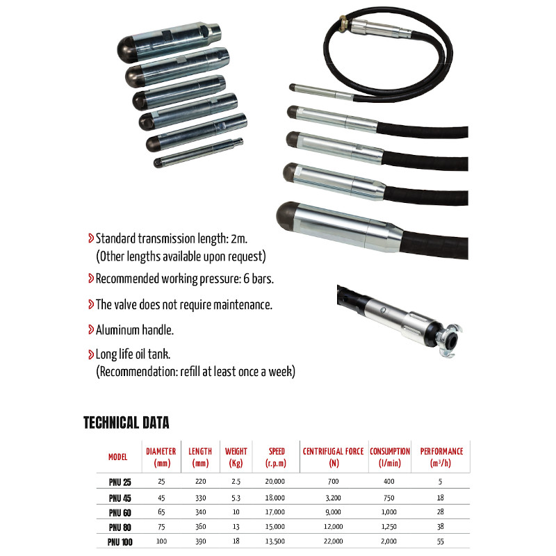 - Technical Specifications: Standard transmission length 2m (other lengths available), recommended working pressure 6 bars.