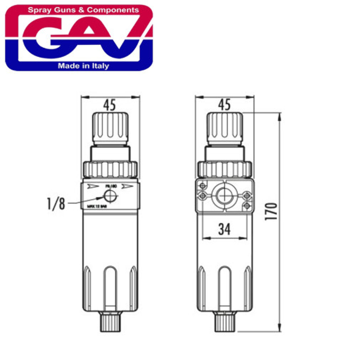 - Maximum Inlet Pressure: 12 Bar